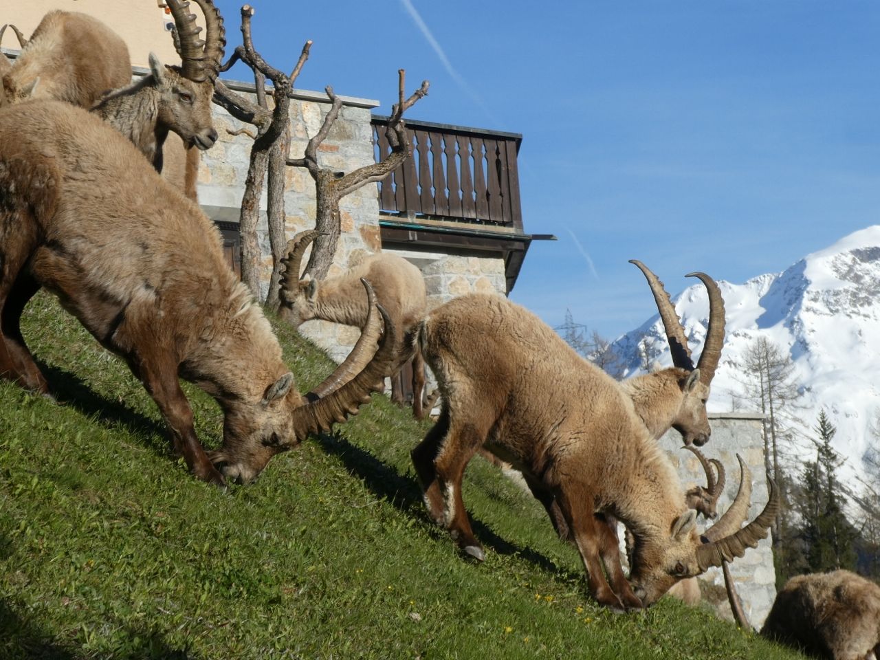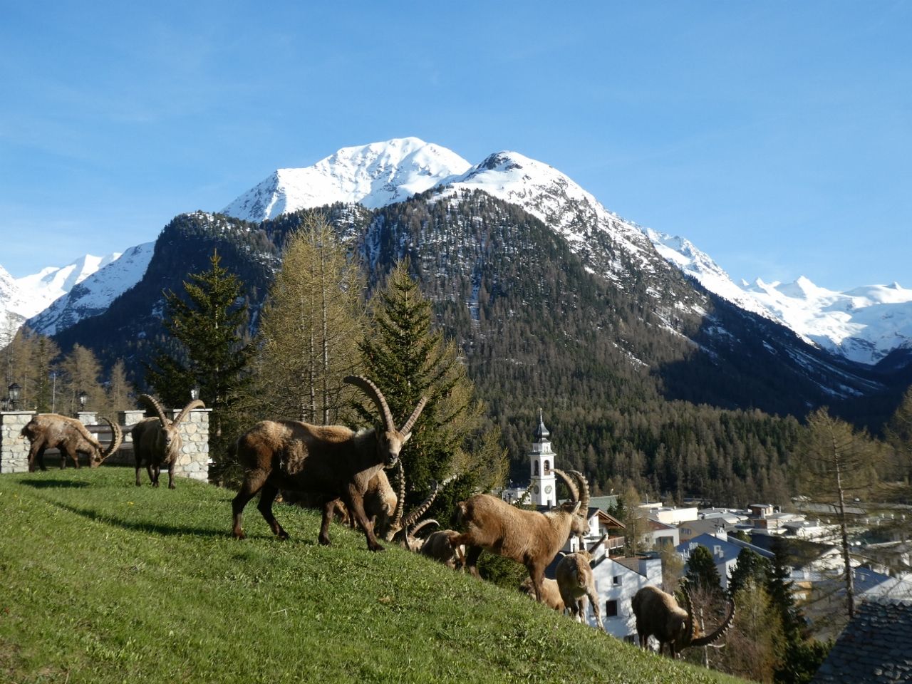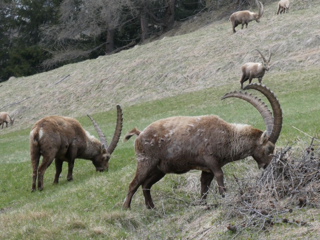 春になるとシュタインボックが山から下りてきます。裏庭まで来ますので、かなり近くで見ることができます。グラウビュンデン州の州の旗にも描かれているシンボル的な山羊。スイスでもこれだけたくさんの数はなかなか見られません。春にグラウビュンデン州にお出での際は是非、シュタインボックを見に行かれてはいかがでしょうか?ガイドのご用命は下記まで。