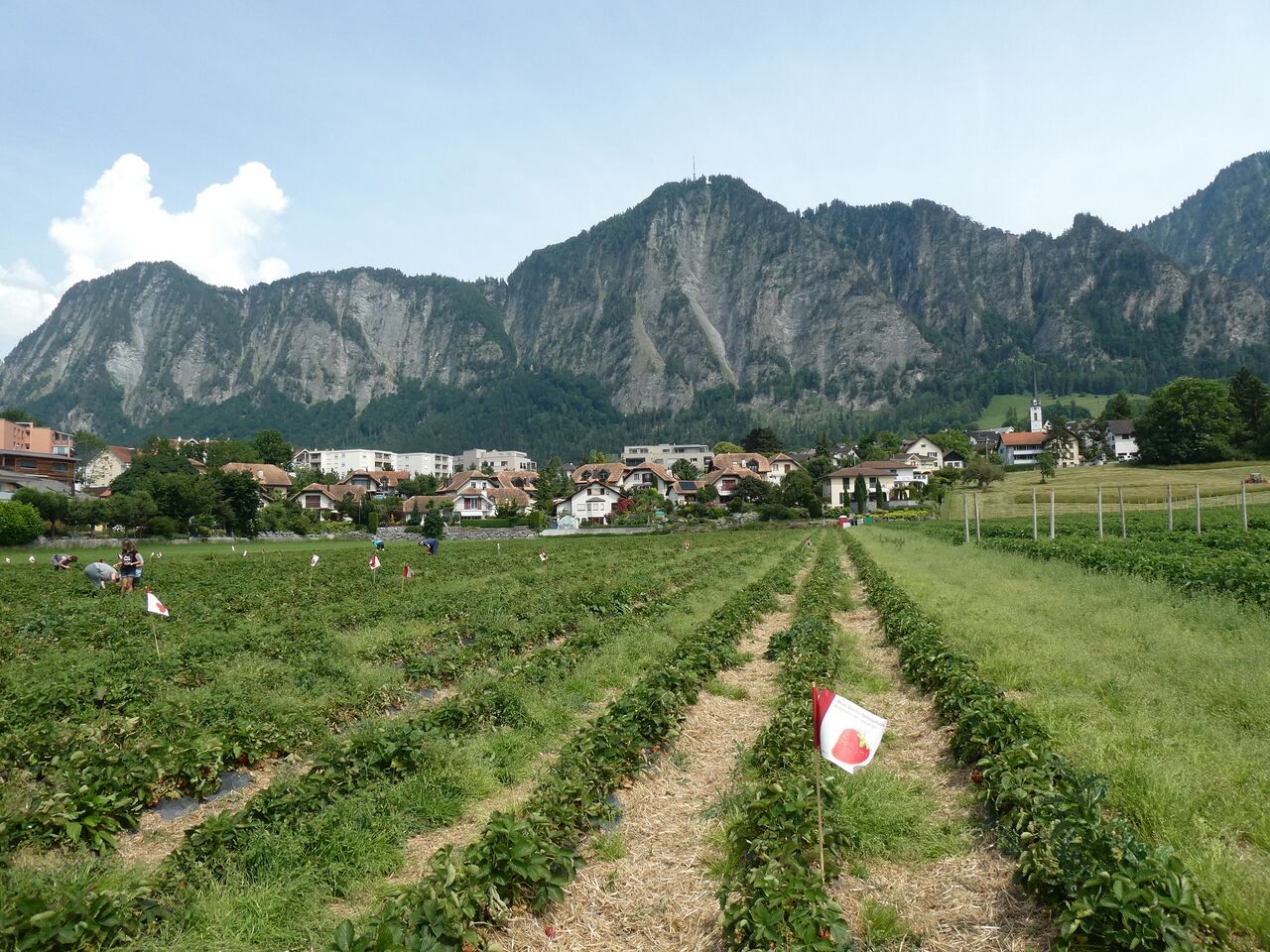 ランドクアルトにいちご狩りに出かけてきました。青空の下で苺狩りができるのもスイスならでは。日本ではハウスがほとんどと聞きました。急に暑くなってきたので苺もいい具合に育っており、例年よりも甘い苺が採れました。一年に一度のお楽しみ。雨天中止なので難しいかもしれませんが、6月中旬にスイスにお越しの際は是非挑戦されてみてはいかがでしょうか?日本に持って帰るのは無理なので、旅行中に全部食べることになりますね