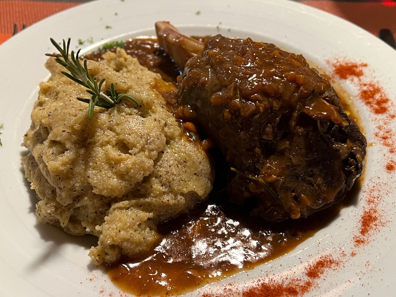 秋と言えばジビエ料理の季節ですね。今年は鹿肉のグリルとポルチーニ、野生豚のすね肉の煮込みとポレンタをいただきました。ワインも進んでしまいます。ヴァルミセル(モンブラン)もマストです。