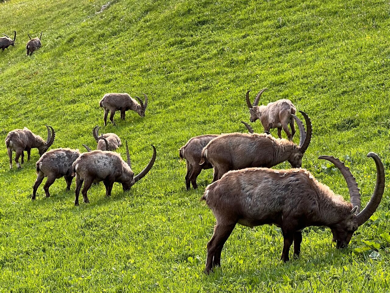 今年もシュタインボックが里に下りて来ています。雪が少なかったので3月末には目撃されていました。草も沢山食べたので後少しで山に帰っていくと思われます。この時期にエンガディンにお越しの際は是非ポントレジーナに会いに行ってみてください。近くで野生動物を見ることができる貴重な機会です。