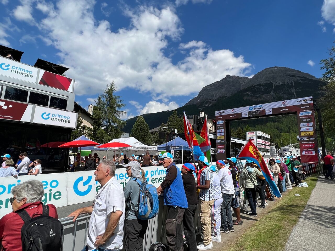 ツールドスイスがラ・プントにやって来ました。この日はレース5日目。フィーシュをスタートし、フルカ、オーバーアルプ、アルブラの3つの峠を越えてラ・プントまでの211キロ。